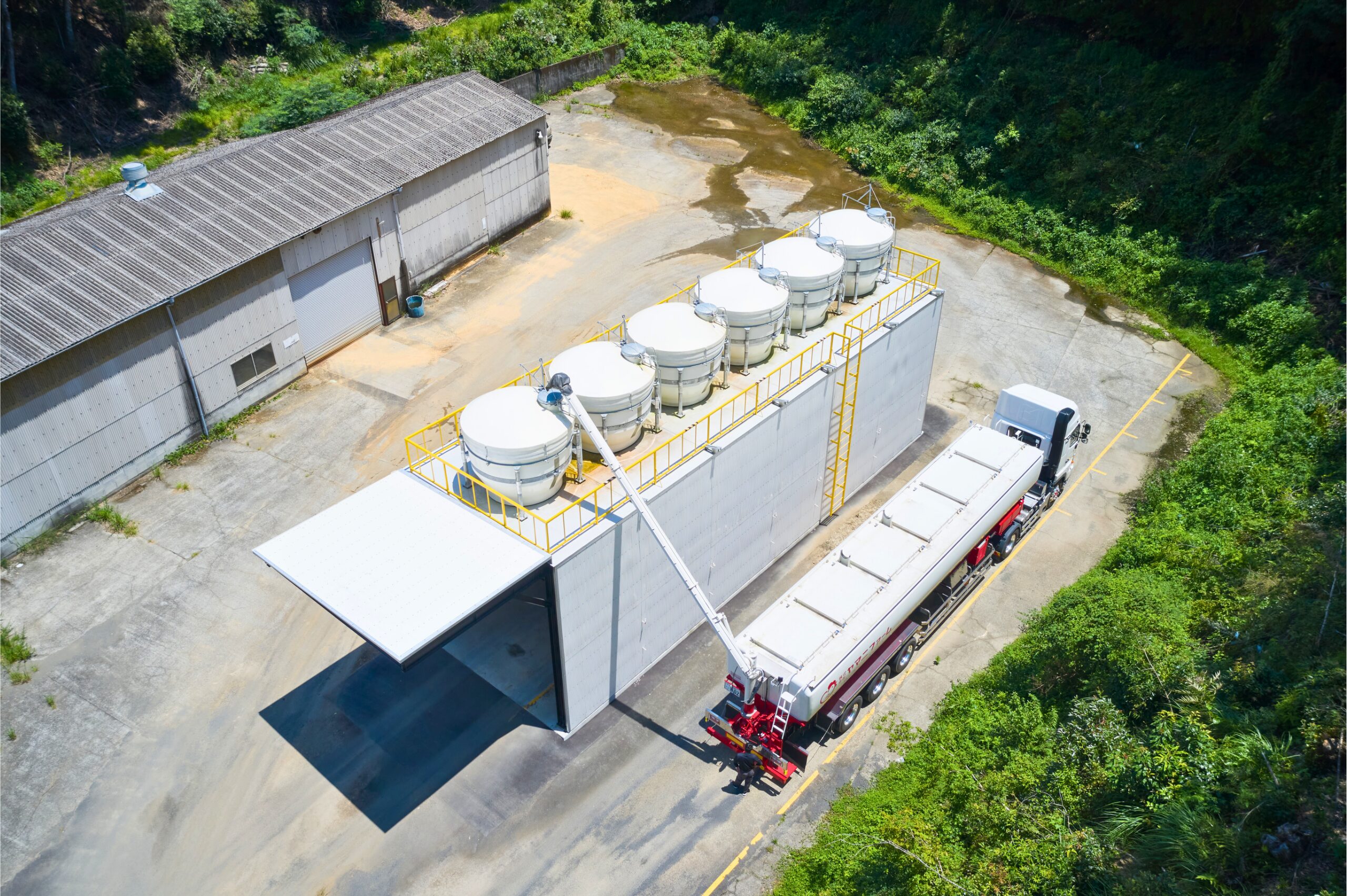 飼料コストの抑制と安定供給を目的に、自社で使用する飼料の運搬を行っています。 国道沿いに取得した倉庫を飼料ストック基地として整備し、常時備蓄を実施。 これにより、南海トラフ巨大地震などの大規模災害や、鳥インフルエンザなどの家畜伝染病発生時にも柔軟に対応できる体制を構築しています。 また、繁忙期の供給不足リスクを軽減し、安定した生産体制を支える重要な役割を担っています。